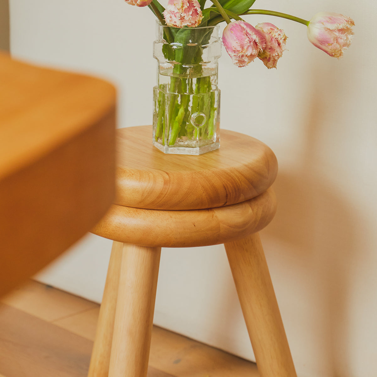 Easy-to-assemble small wooden stool. Tall.